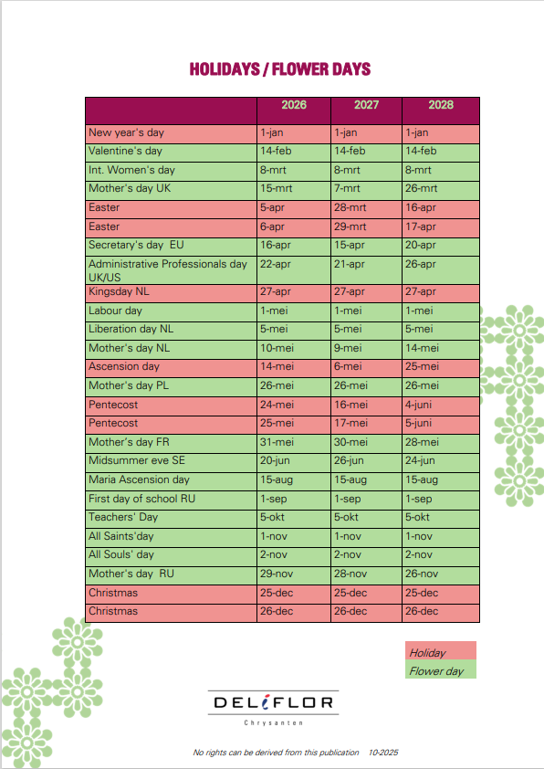 Available Assortment on the Dutch Market from week 44 2025 until week 8 2026.